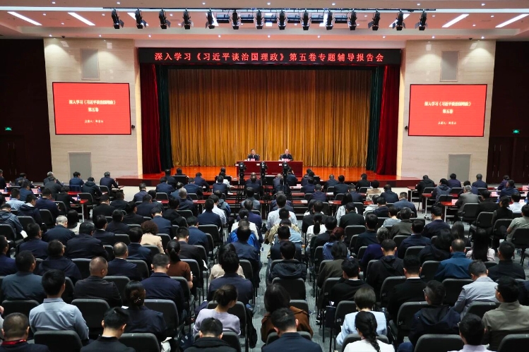 2025年10月14日,工业和信息化部党组举办深入学习《习近平谈治国理政》第五卷专题辅导报告会,邀请中央党史和文献研究院院长曲青山作辅导报告。部党组书记、部长李乐成主持会议并讲话。部领导张云明、谢少锋、钟志红出席会议。