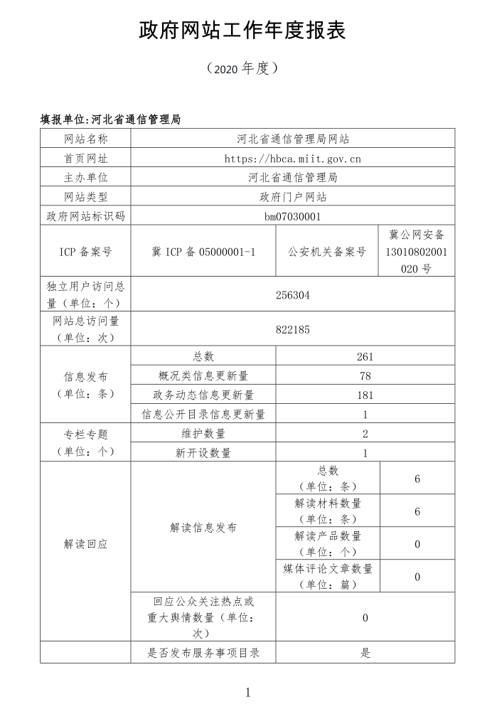 河北省通信管理局网站2020年度工作报表
